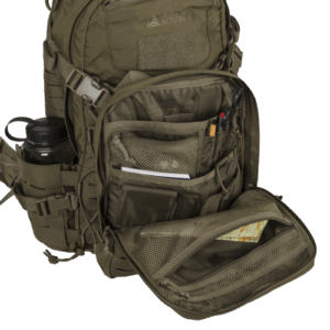 3)オーガナイザーポケット:ビーバーテールフラップは取り外しも可能で、本体から切り離してメディックバッグやミッションバッグとして運用できます。隙間には濡れた衣類などを挟んでおくことも可能です。