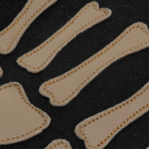 関節部に縫い付けられた装飾パーツにも天然皮革を採用しています。天然皮革も優れた断熱性、防水性、通気性を持っており、ただの飾りというだけでなく、性能面にも寄与しています。