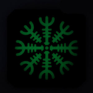 アイギスヘルムはHełm Grozy/ヘウム・グロズィ(恐怖の兜)とも呼ばれる模様で、ルーン文字に基づいたアイスランドの伝統的な魔除けです。戦場において敵を怖れさせ、戦うことなく彼らを退かせることを目的に使われていました。