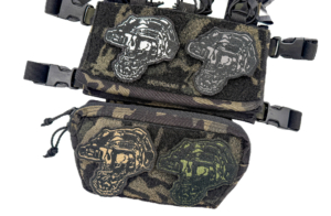 NVG付きヘルメット × スカルの横顔という、いかにも特殊部隊な見た目に、ストロボライトやバッテリーのコードの処理など、国内メーカーによる縫製でしっかりデザインされています。
